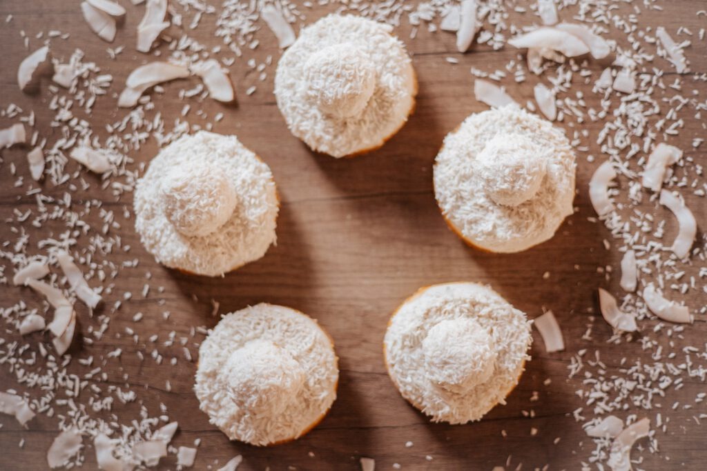 Składniki: Śmietanka, jaja, pasta orzechów arachidowych, substancja słodzaca: erytrol, mleczko kokosowe, napój migdałowy, mleko kokosowe w proszku, Fit cream white choco (Malitol, tłuszcz shea, mleko w proszku odtłuszczone, tłuszcz kokosowy, olej słonecznikowy, serwatka w proszku, lecytyna słonecznikowa, aromat), mąka arachidowa, błonnik bambusowy, olej kokosowy, proszek do pieczenia, guma ksantanowa, sól himalajska